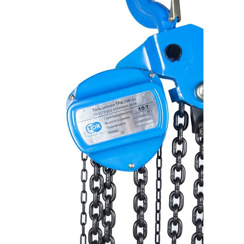 Таль ручная шестеренная TOR ТРШ С PRO это самая популярная модель ручных талей на территории РФ. Надежная конструкция с автоматическим дисковым тормозом обеспечивает плавное и безопасное перемещение грузов, идеальная подгонка деталей отвечает за точное позиционирование перемещаемых объектов. ! Цепь соответствует 8 классу прочности по ГОСТ. ! Верхний и нижний крюки усилены ребрами жесткости. ! Редуктор подъема из стали марки СТ20. TOR ТРШ С PRO доступна в вариантах Грузоподъемность от 0,5 до 50 т Высота подъема от 3 до 18 м Где используется? Выносливый, неприхотливый механизм активно используется на складах, стройках, производственных площадках. Преимущества тали TOR ТРШ C PRO Усиленная конструкция: — Усиленные верхний и нижний крюки. — Цепь соответствует 8 классу прочности по ГОСТ. — Надежный редуктор подъёма из стали СТ20. — Автоматический тормоз с диском феродо. Мгновенная остановка груза, гарантия безопасности. — Долговечная конструкция тали рассчитана на 4х кратный запас прочности. — Срок службы 10 лет. Удобство использования: — Общепромышленное исполнение — для работы в тяжелых условиях! — Точное позиционирование груза благодаря идеальной подгонке деталей на заводе. — Не требуется подключение к электросети. — Температурный режим использования от -20 до +40°C. — Надежный механизм не дает сбоев в работе. — Простое техническое обслуживание в основном заключается в очистке от грязи и смазке.