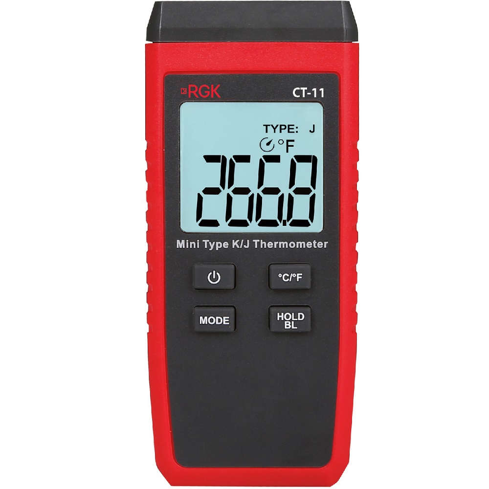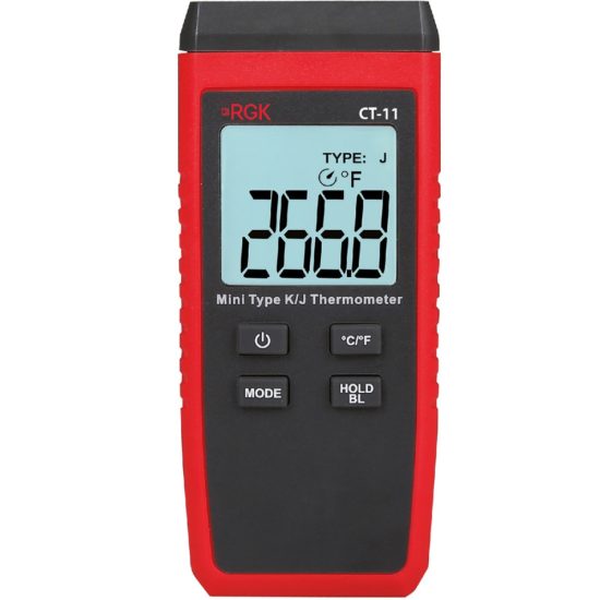 В базовом исполнении одноканальный контактный термометр RGK CT-11 с поверкой измеряет температуру в диапазоне от — 40 °С до + 260 °С с погрешностью не более ± 1,5 °C. Контактный способ работы позволяет точно определить температуру любой поверхности, жидкости или газа.