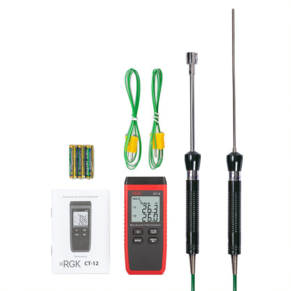 Термометр RGK CT-12 с погружным зондом температуры TR-10W и поверхностным зондом TR-10S