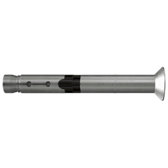 Высокоэффективный анкер FH II-SK с потайной головкой изготовлен из оцинкованной и нержавеющей стали и представляет собой втулочный анкер для эстетического крепления. FH II-SK идеально подходит для крепления перил, стальных конструкций и лестниц в бетоне с трещинами и без трещин. ЕТА и сертификат огнестойкости R 120 гарантируют дополнительную надежность. Кроме того, международные сертификаты регламентируют монтаж в районах с сейсмической активностью (категории C1 и C2) Анкер устанавливается заподлицо и позволяет сэкономить время при сквозном монтаже. Во время затяжки конус перемещается в распорную втулку и расширяет ее, прижимая к стенкам просверленного отверстия. Черное пластиковое кольцо предотвращает проворачивание анкера при затяжке и действует как зона смятия, воспринимающая проскальзывание под действием крутящего момента, благодаря чему закрепляемое изделие притягивается к базовому материалу.