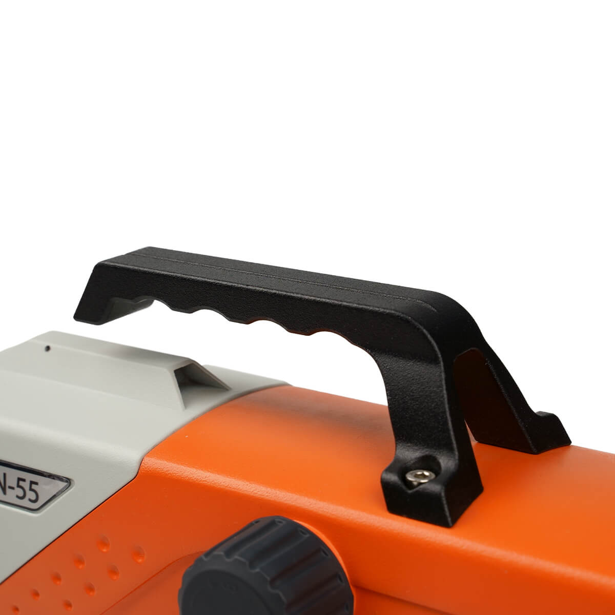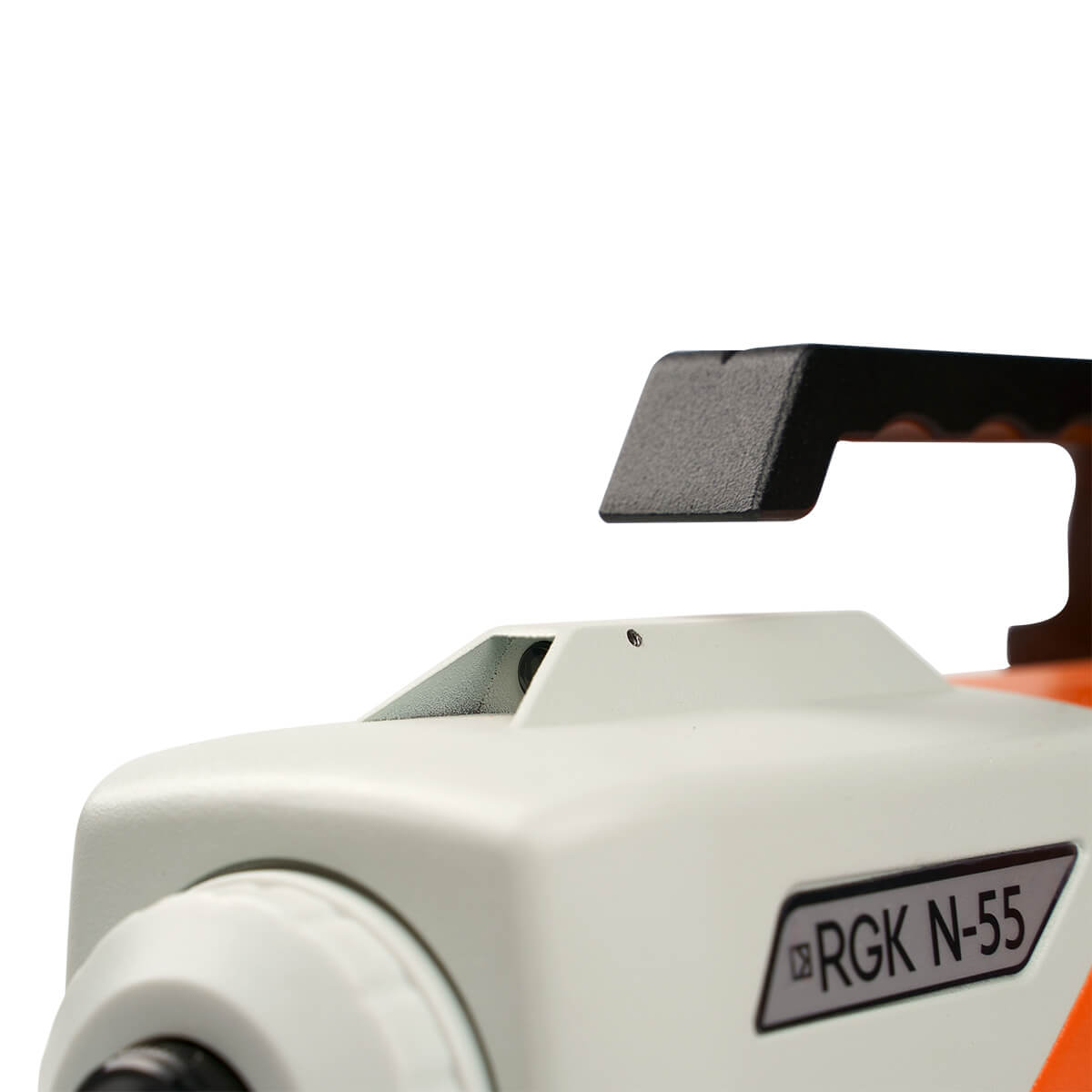 Главное и наиболее значимое отличие модели N-55 от конкурентов — 55-кратное увеличение зрительной трубы, по этому параметру прибор не имеет себе равных. Такое увеличение позволяет специалисту максимально точно снять отсчет с геодезической рейки.