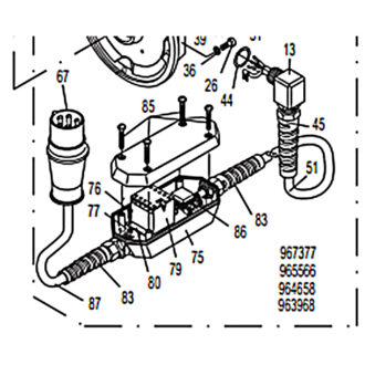 В состав комбоартикула входят: Корпус редуктора (поз.90), Фланец подачи воды (поз. 91), Шланг подачи воды (поз.62). Материал корпуса, фланца: алюминиевый сплав,Способ изготовления: литье под.