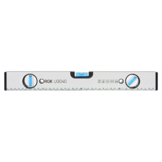 Строительный уровень RGK U2040 длиной 40 сантиметров оснащен тремя ампулами, расположенными горизонтально, вертикально и под углом 45°. Боковые пластиковые вставки защищают уровень при падении..