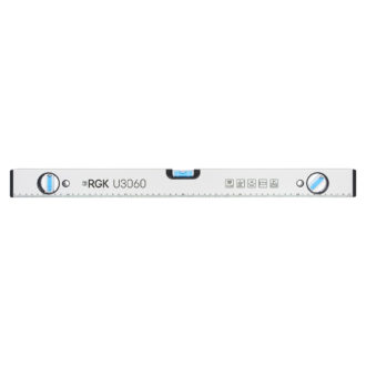 Строительный уровень RGK U3060 длиной 60 сантиметров выполнен в прочном металлическом корпусе из литого профиля, за счет чего уровень защищен от коррозии и ударов..