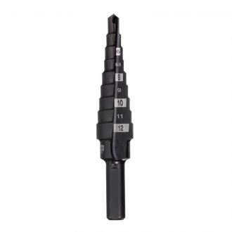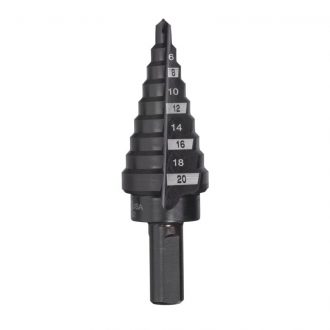 Ступенчатые сверла идеально подходят для сверления таких материалов как: черного и цветного листового металла, профиля и труб. Меди, латуни и алюминия. Нержавеющей стали. Пластика..