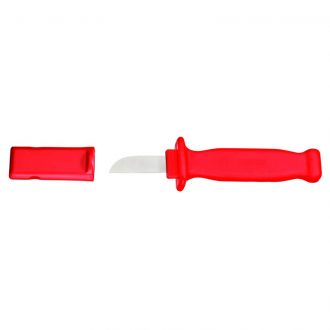 Нож с загнутым носом идеален для зачистки проводов и кабелей Лезвие из нержавеющей стали со специальной заточкой, чтоб оставаться острым дольше Полностью металлическая конструкция.