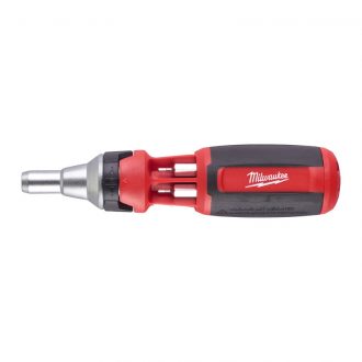Эргономичная отвертка длинной 152 мм с битами HEX ¼″ и встроенным приспособлением для загибания проводов. Полностью металлическая трещотка для увеличения скорости закручивания до 2.