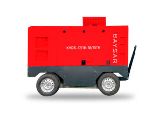 Дизельный компрессор Baysar KVDS-17/18-18/15TK — дизельный винтовой компрессор с 6-цилиндровым дизельным двигателем Cummins. Установка выдает 17/18 м3/мин и давление 18/15 бар. Большой топливный бак.